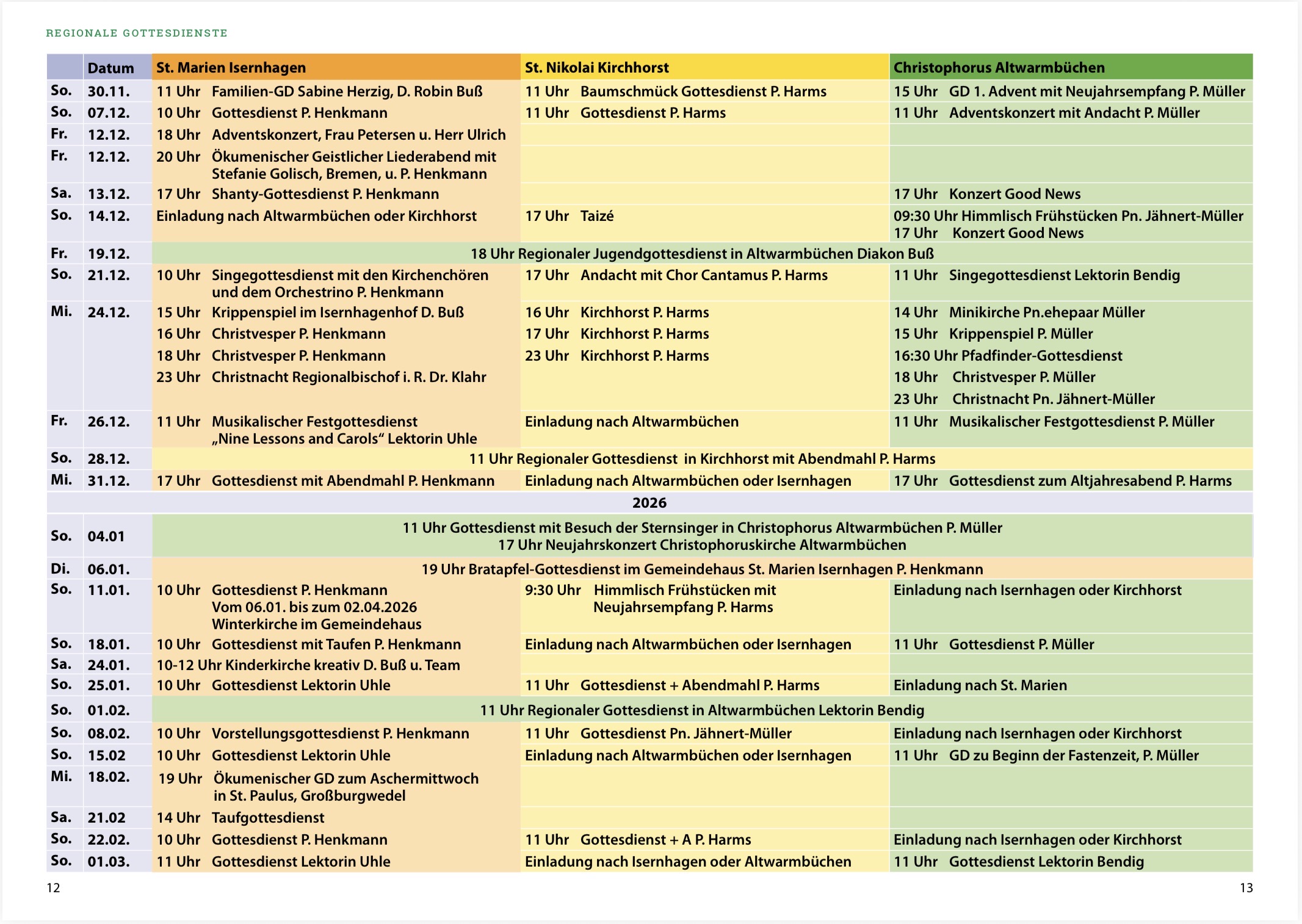 Gottesdienstkalender